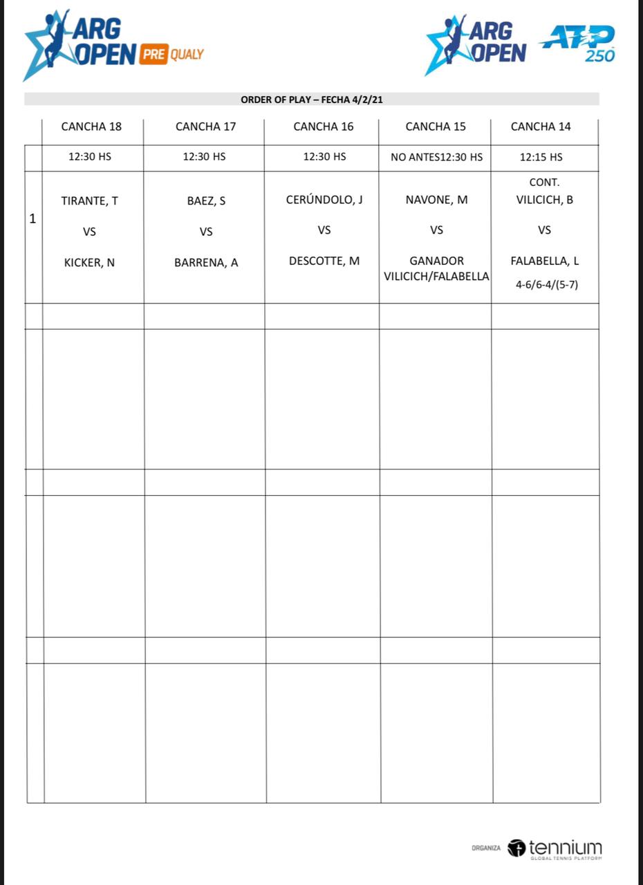 Kicker, que al no tener ranking en este momento juega con una invitación, volvió a ganar cómodamente, como en el debut de ayer, esta vez frente a Fermín Tenti (8º favorito) por 6-0 y 6-1 y mañana se medirá con Thiago Tirante (4º), flamante jugador Tennium, que superó a Ezequiel Simonit por 6-4, 6-7 (10-8).