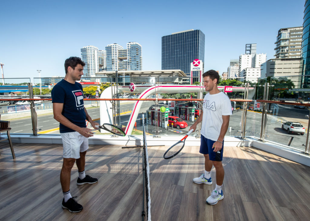 Buenos Aires, 11 de febrero, 2020.- Preparando los motores, los máximos favoritos del Argentina Open, Diego Schwartzman y Guido Pella, visitaron hoy una estación de servicio de AXION Energy para promocionar a la vigésima edición del torneo entre varios fanáticos que se acercaron para tener un vistazo de las estrellas.